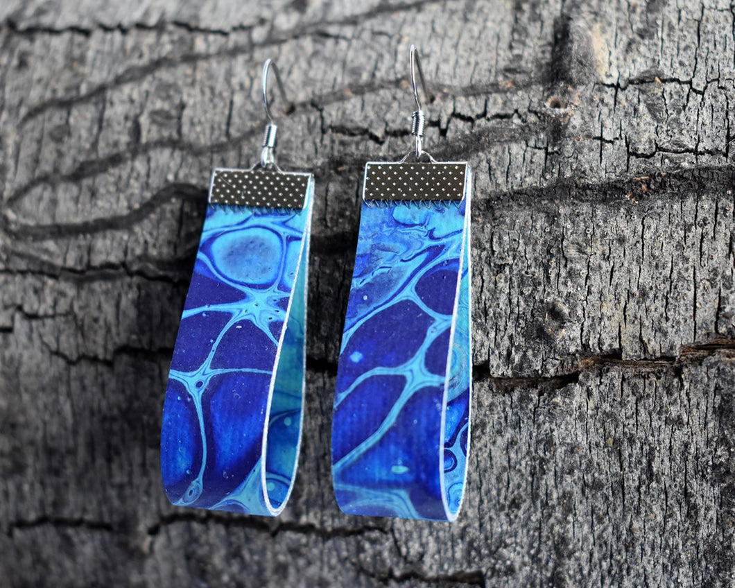This one-of-a-kind pair of earrings features hand cut loops of painted canvas attached back to back with sealed edges. Each earring set is completely unique and cannot be recreated identically. Grab them while you can!